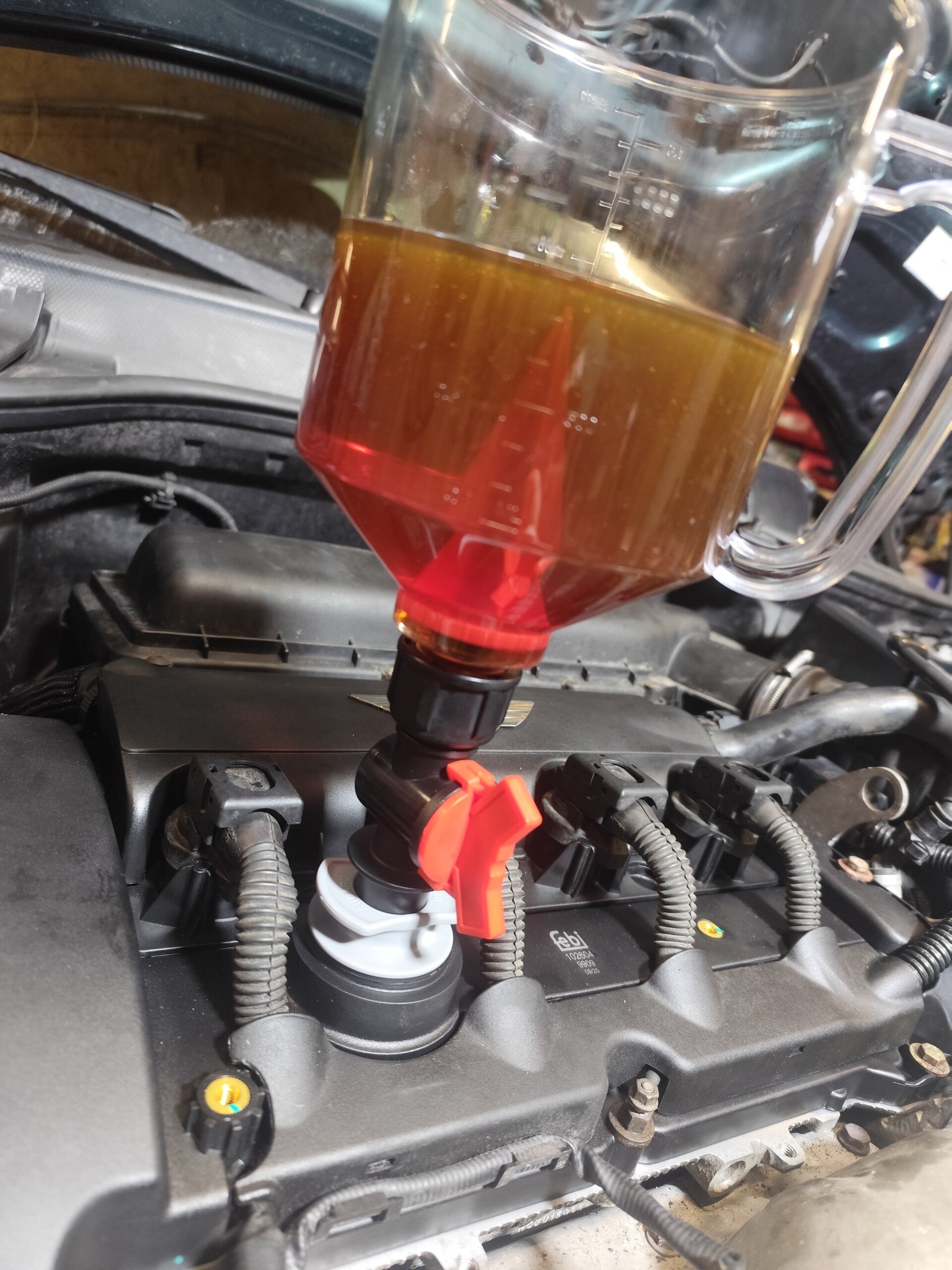 Der alte Ölfilter wird ausgetauscht. Ein neuer Filter sorgt dafür, dass das frische Motoröl sauber bleibt und der Motor optimal geschützt ist. - Befüllen mit neuem Motoröl