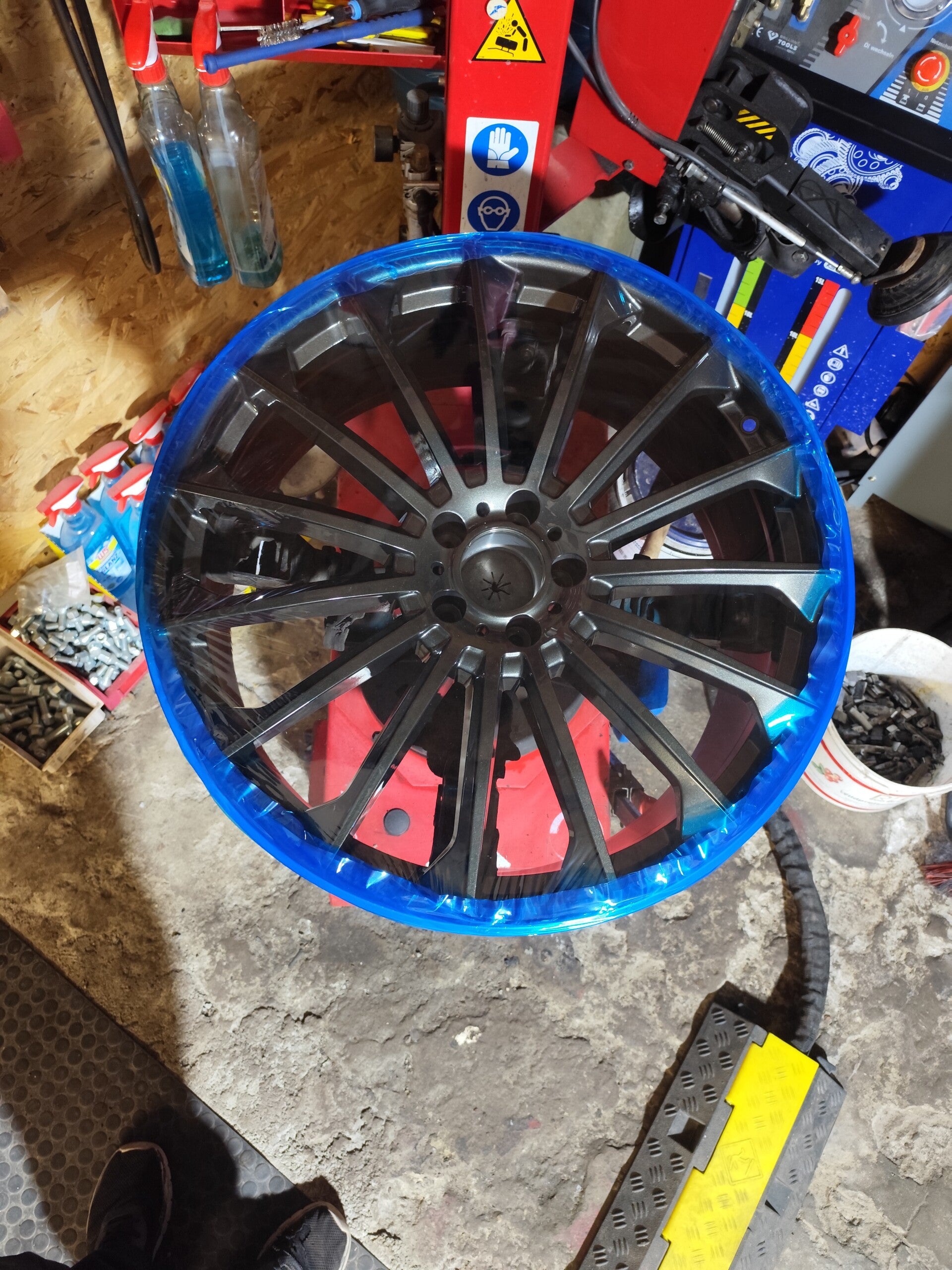 Die vorhandenen Reifen werden von der Felge gelöst und fachgerecht entfernt. Dabei wird die Felge auf Beschädigungen überprüft. - Neue Reifen aufziehen